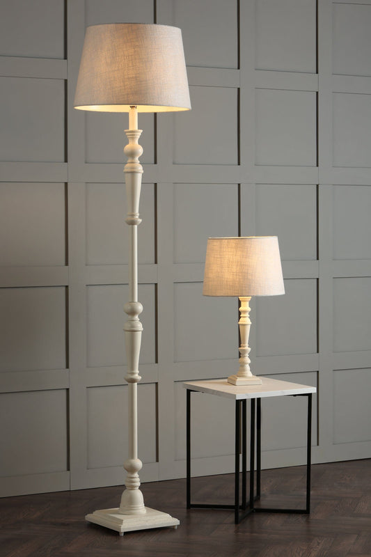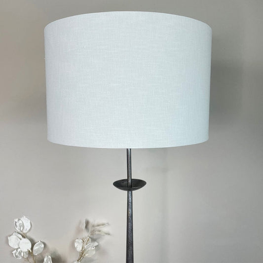 Telford Antique Silver Floor Lamp with White Linen Shade