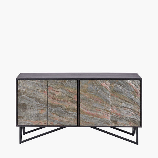 Verde Black Mango Wood & Stone Veneer 4 Door Sideboard