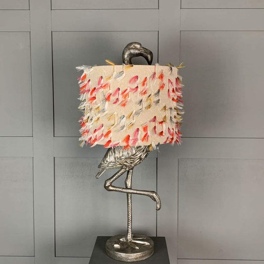 Can Can Flamingo Antique Silver Table Lamp & Fluffy Rainbow Shade