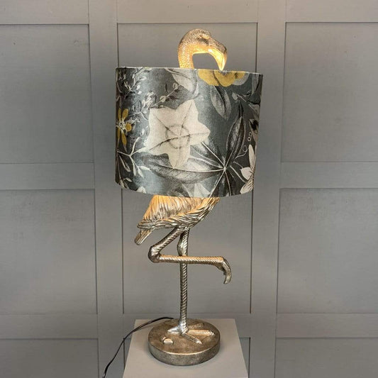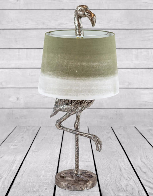 Can Can Flamingo Antique Silver Table Lamp & Choice of Velvet Shade