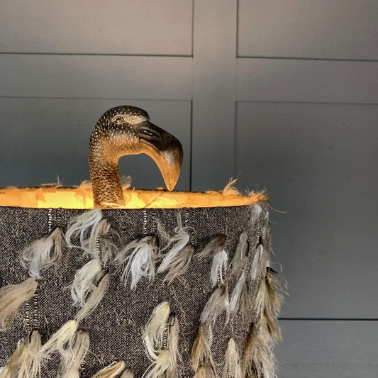Can Can Flamingo Antique Silver Table Lamp & Choice of Fluffy Shade