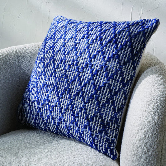 Indoor Outdoor Denim Blue & White Ikat Design Scatter Cushion