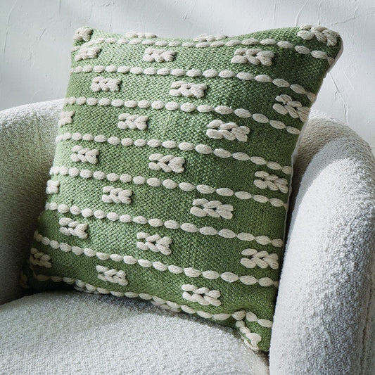 Indoor Outdoor Sage & White Braid Design Square Scatter Cushion