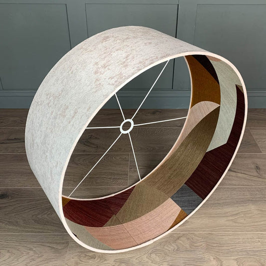 Dusky Pink Velvet Pendant Shade with Arte Puzzle Wallpaper Lining