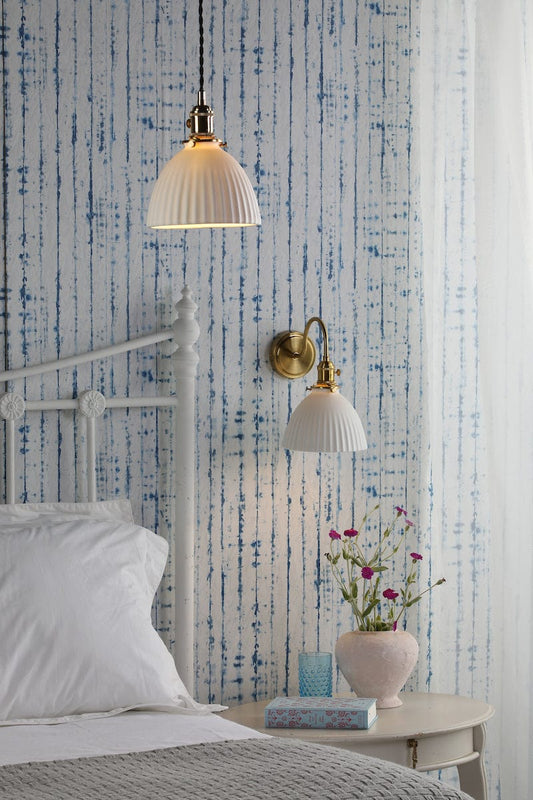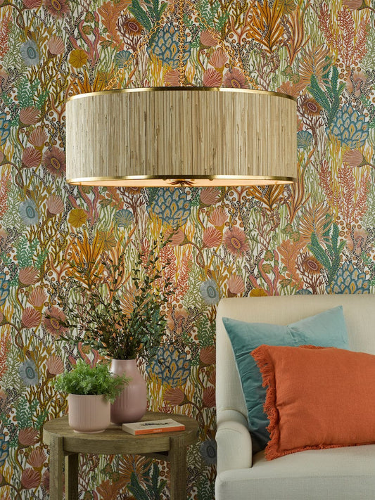 Seri Mineral Wallpaper Lined Pendant Shade with Belvoir Teal