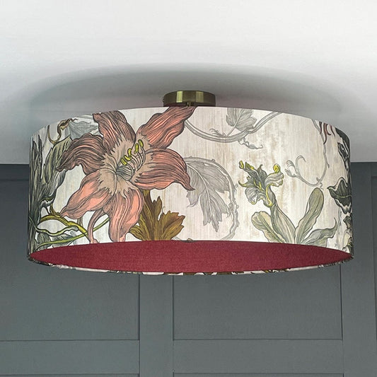 Timorous Beasties Epic Botanic Beige Peach Drum Shade with Berry Fabric Lining