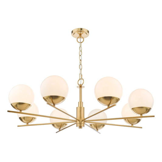 Bono Natural Brass 8 Light Pendant Opal Glass