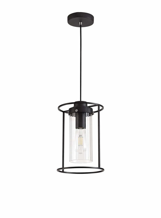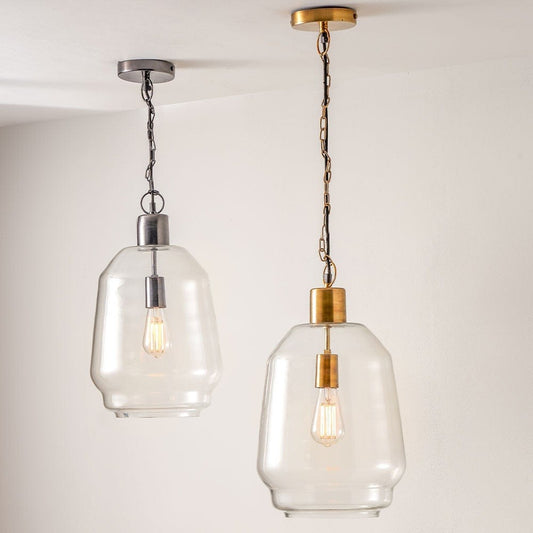 Fia Clear Glass & Black Nickel Metal Chain Drop Pendant