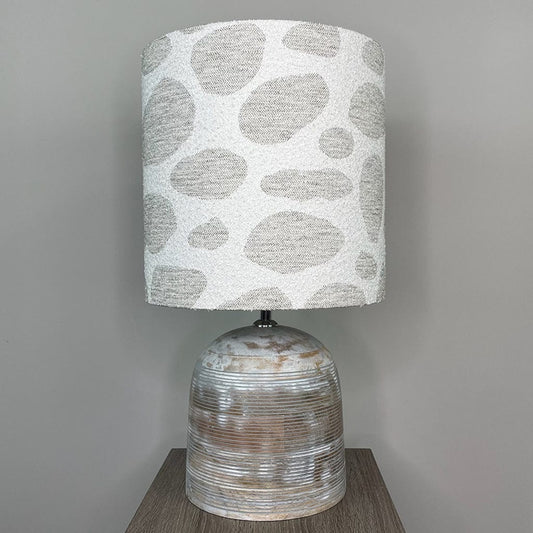 Nelu Warm Grey Wash Engraved Table Lamp with Sigrid Birch Boucle Shade