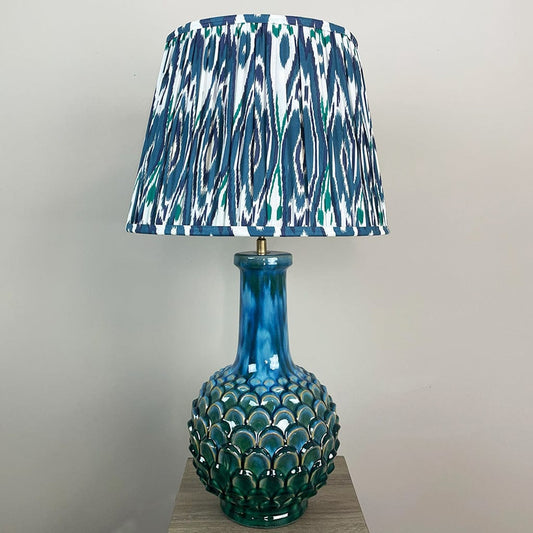Edlyn Blue Green Ceramic Table Lamp with Ocean Blue Ikat Tapered Shade