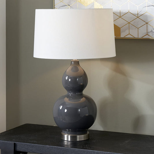 Gatsby Black Ceramic Table Lamp With Brushed Silver Metal Detail