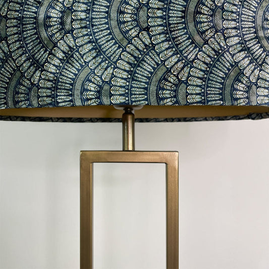 Shiva Antique Brass Table Lamp with Velvet Fantail Sapphire Shade