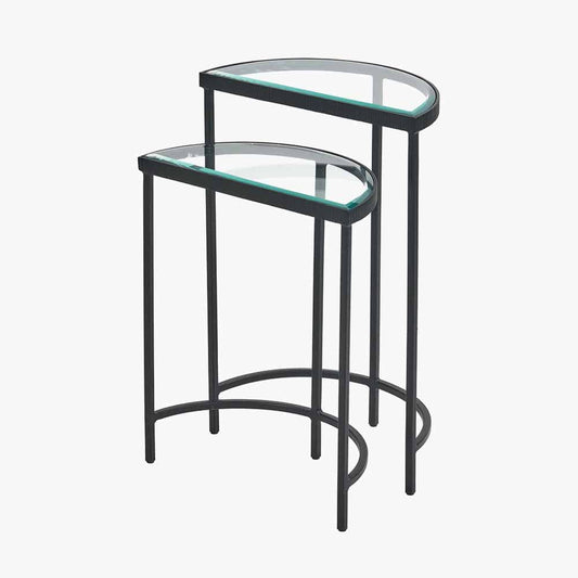 Marazzi Set of 2 Bevelled Glass & Black Metal Half Moon Side Tables
