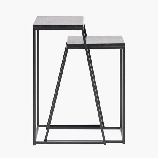Mashiko Set of 2 Black Ash Veneer & Black Metal Side Tables