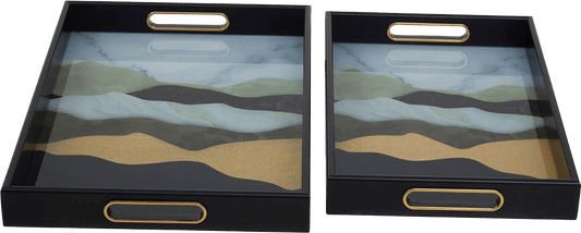 Green and Gold Agate Rectangle Tray Set