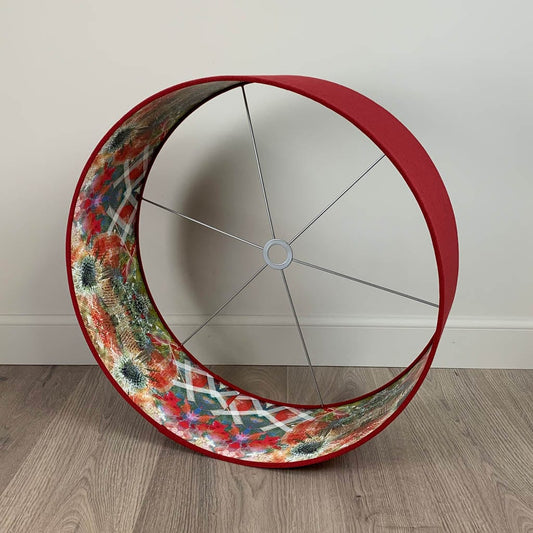 This allows for great creativity and you can be confident that your ceiling pendant fitting will be special. We can also line the lampshade with another fabric, for example as we have used on this Mairi Helena Poppy Cloud ceiling lampshade with coordinating pink silk lining.