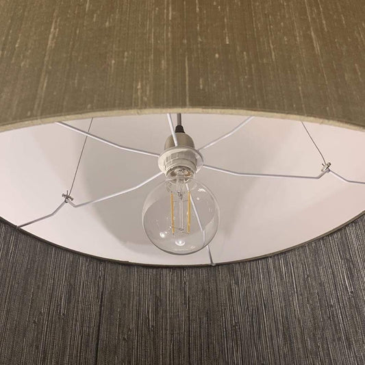 We will also advise on the correct pendant fitment and we can also recommend the correct bulb to really make the lining shine. For more light output we can make you a 3 light suspension pendant fitting for lampshades. These can be on a single metal rod or on a 3 wire suspension fitting. The 3 light option requires a baffle to hide the 3 bulb lampholders. Some people prefer this as the bulb is not visible, however the new LED decorative bulbs are so effective and without glare that you wouldn’t want to hide them.