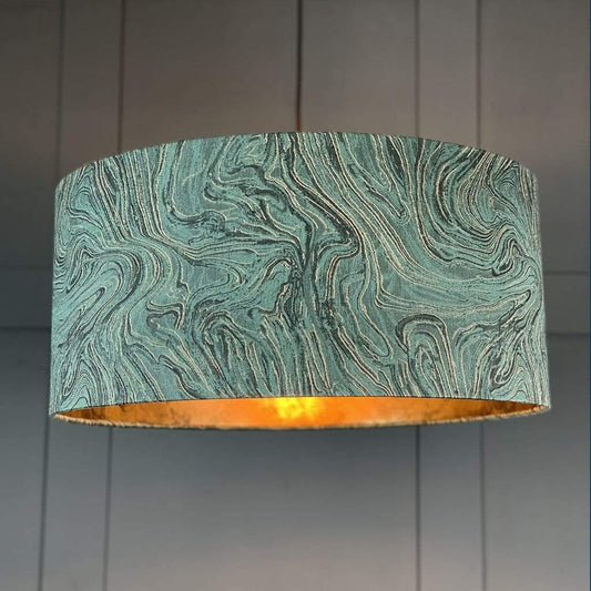 Jade Green, Black & Gold Marble Shade Lined with Golden Brown Burnished Wallpaper