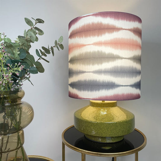 Pamplona Ceramic Green Table Lamp with Usuko Cranberry Rose Lampshade
