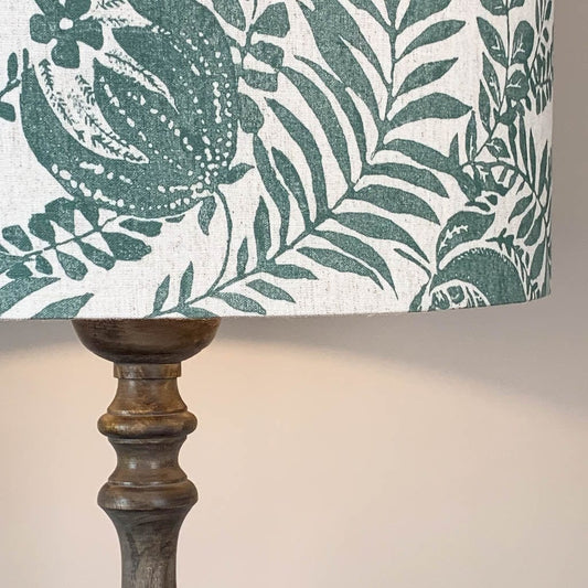 Lampshade in Julia Clare's Efflorsecence Linen in Green with Champagne Lining