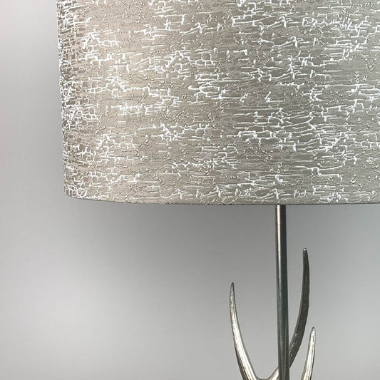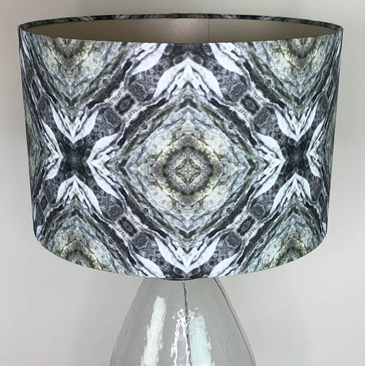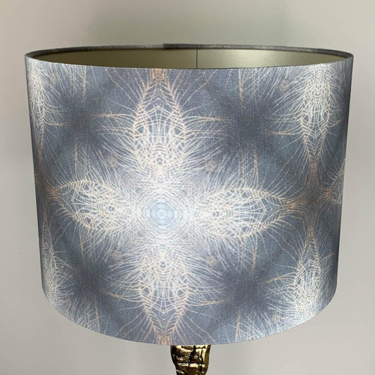 Lampshade in Julia Clare's Peacock Feather Linen in Warm Ash & Blue Shade with Champagne Lining