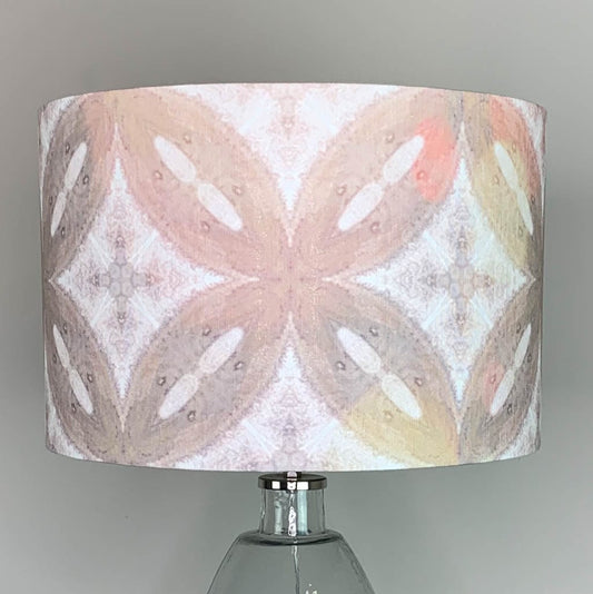 Lampshade in Julia Clare's Ancient Tracery Linen Coral with Champagne Lining