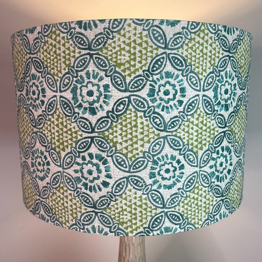 Passiflora Kingfisher Fabric Pendant Shade with Meadow Green Outer