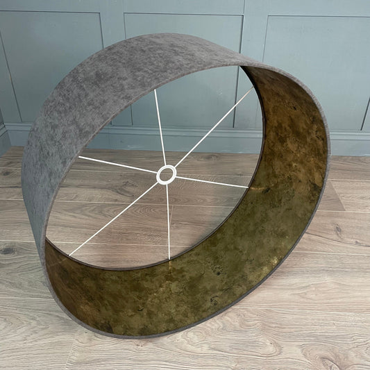 Mairi Helena Mirrored Storm Linen Dark Pendant Shade with Burnt Orange Silk Lining