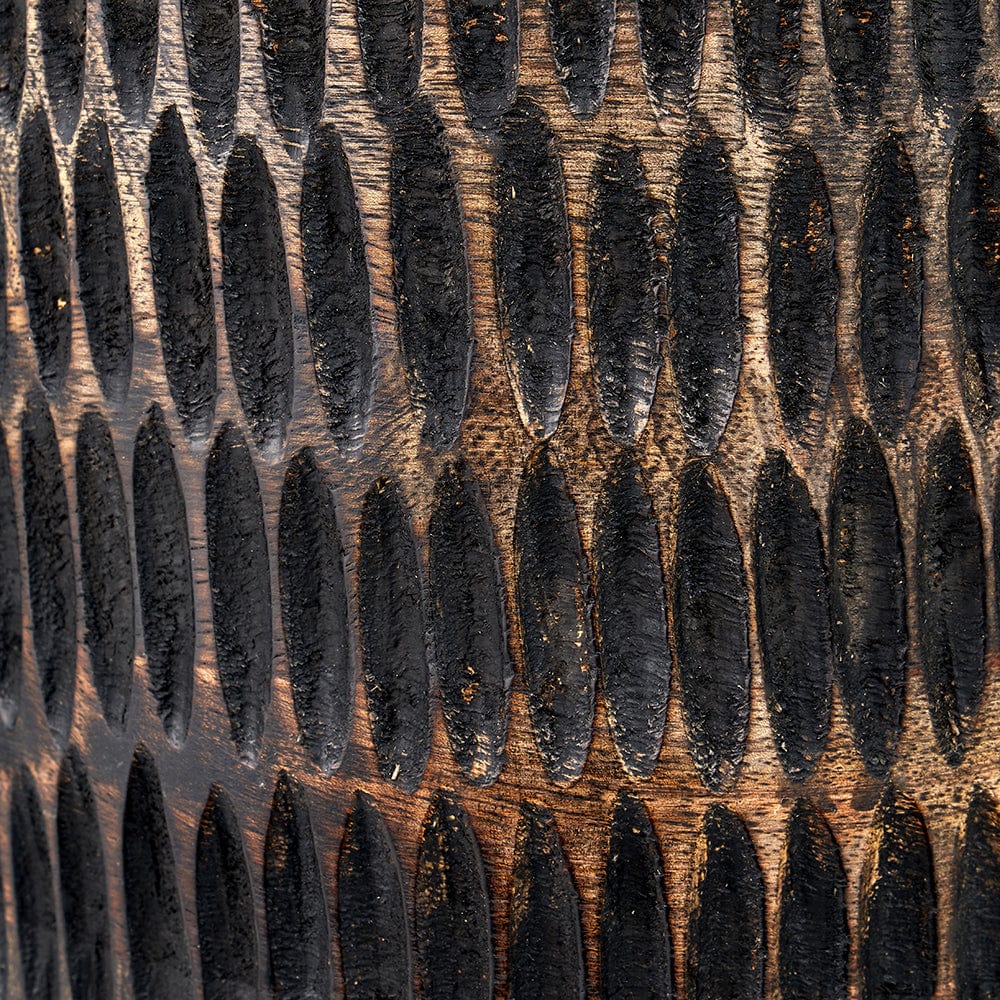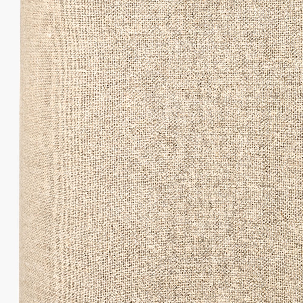 This Alaric table lamp, handcrafted in India, boasts a unique antique black wash and a striking combination of natural wood grain, linen, and intricate carvings. The tall, elegant lampshade in a neutral colour palette perfectly complements the warm, natural materials of the base, creating a cosy and sophisticated lighting atmosphere. Perfect for any Scandi-inspired setting, this lamp adds a touch of texture and style to your space.