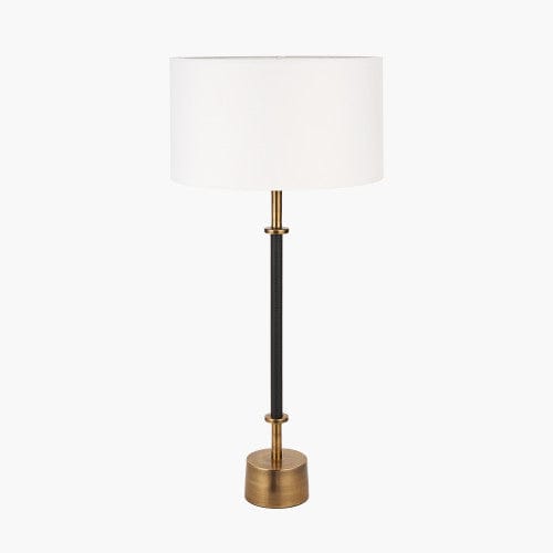 The Antoine black croc and antique brass tall table lamp exudes elegant style with a refined, croc-textured stick and contemporary solid metal base in antique brass. This statement piece with detailed touches will look stunning with one of our fabulous shades. We recommend a 35cm diameter shade for the perfect finishing touch.