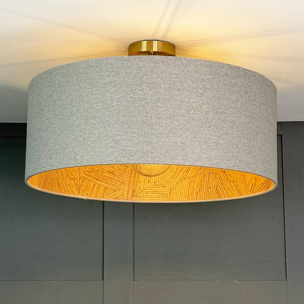 Electrify your shade to your desired height by installing one of our pendant light fittings, available in a variety of drops and metal finishes. Paired here with our semi flush ceiling rod in antique brass; other size options available below.