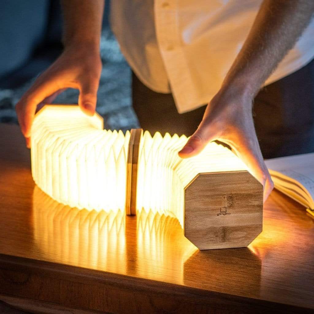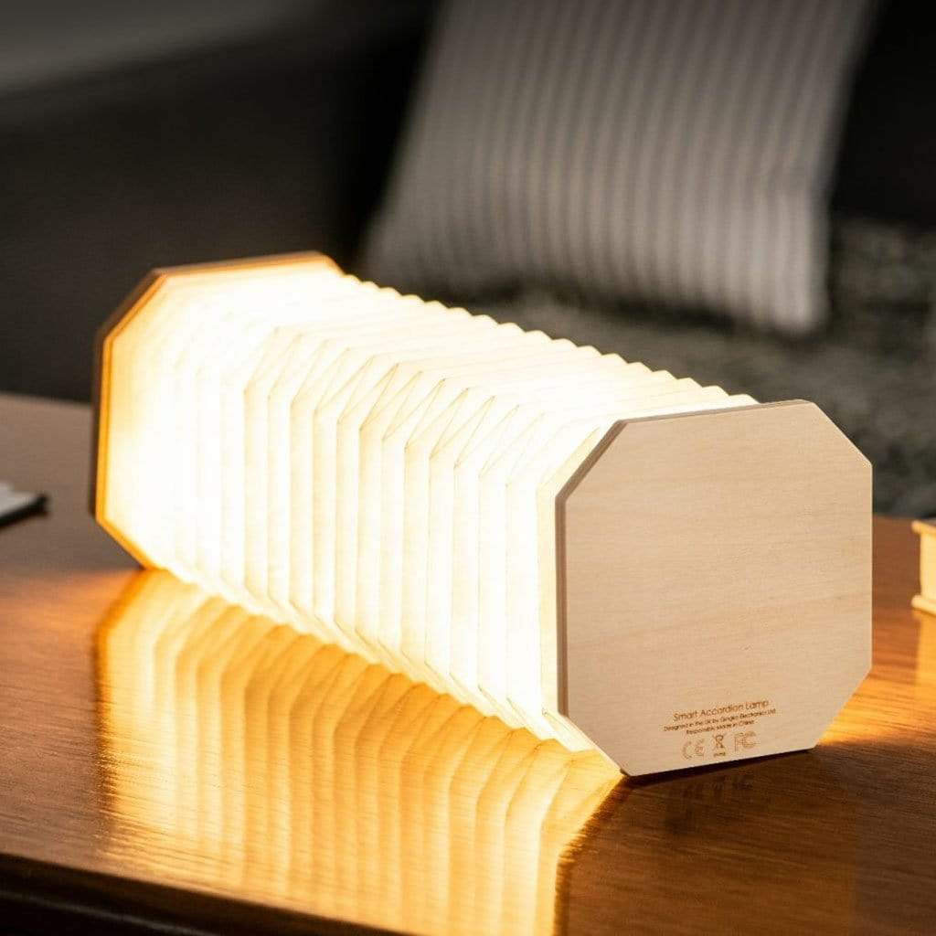 The Gingko Smart Accordion Lamp is a versatile and stylish addition to any room. With its accordion shape, it can transform from a warm LED light to a cool white LED light. It's also portable and rechargeable, making it perfect for creating a unique light mood wherever you go. Plus, you can connect multiple units to create a sculptural display.