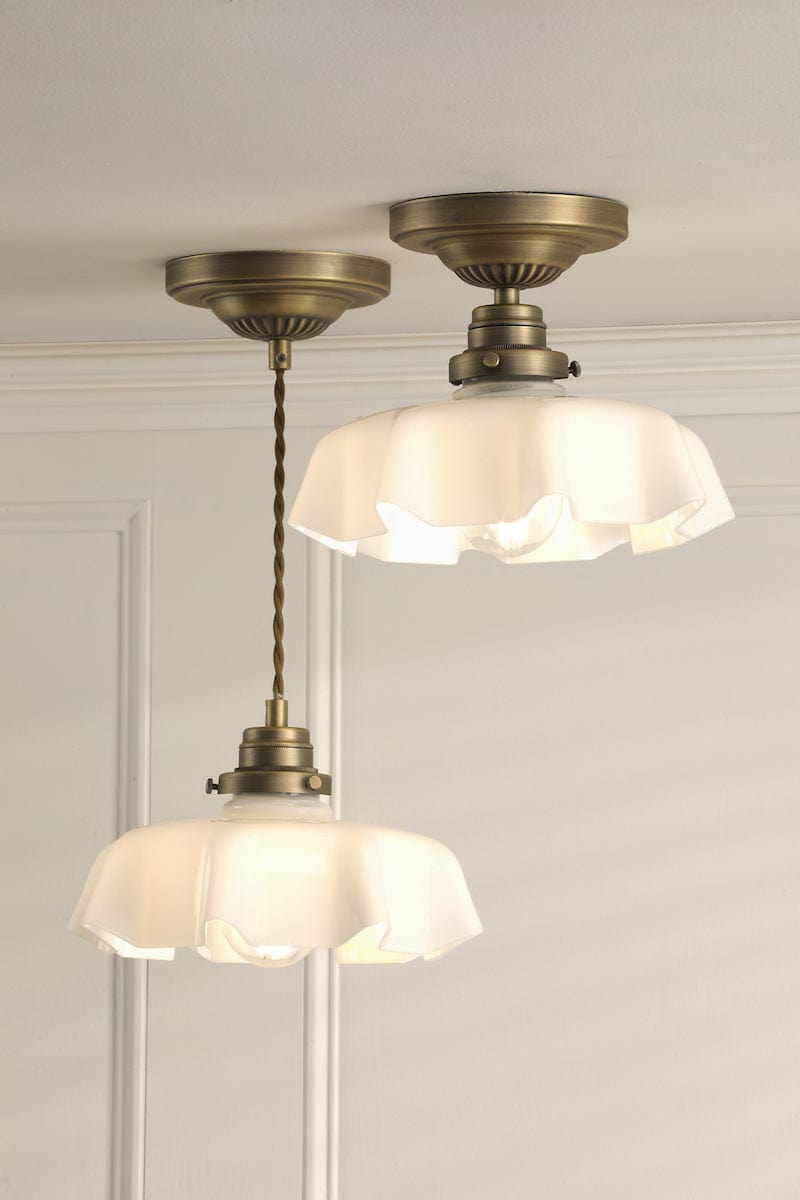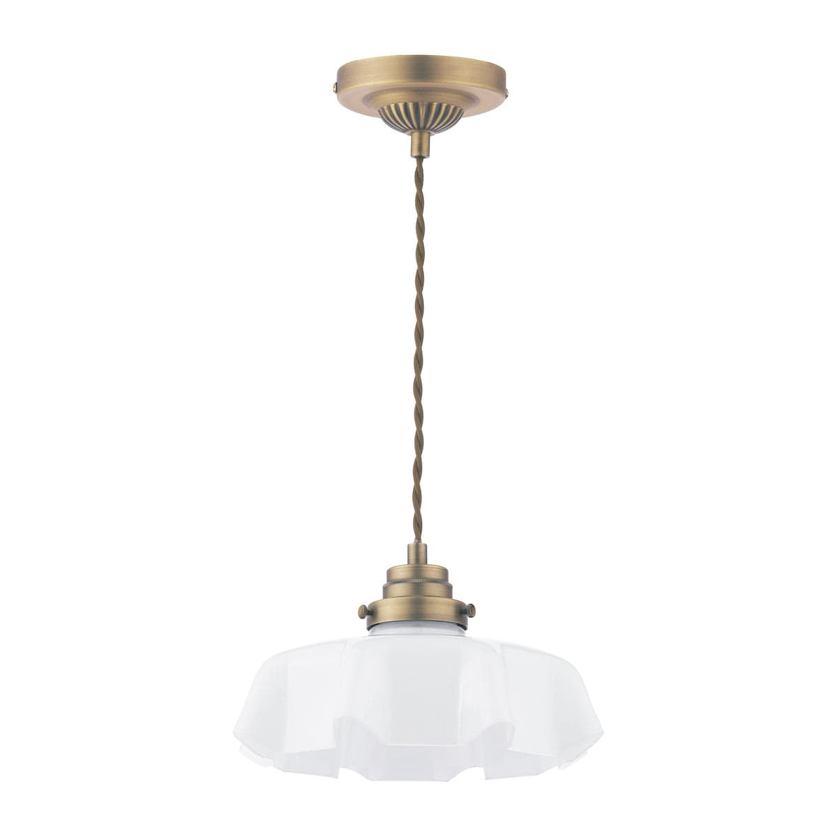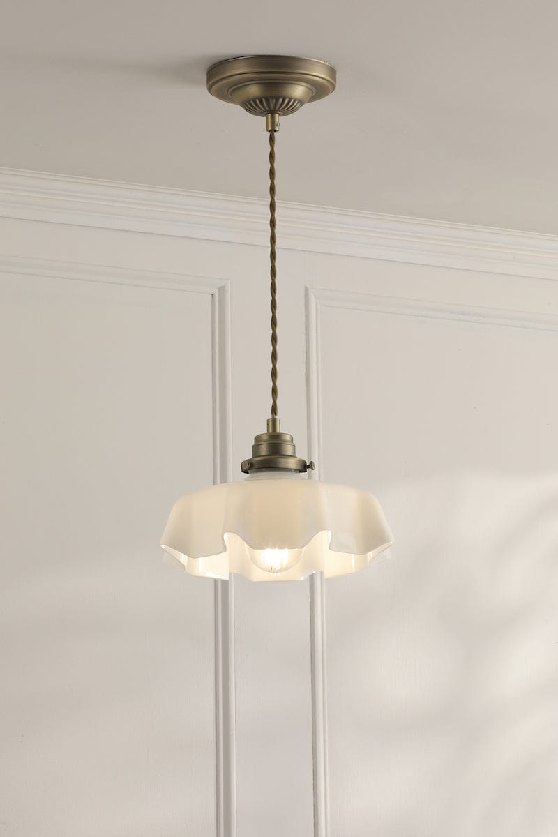 Transform this classic white glass and antique brass ceiling light into a perfect fit for any room in your home. Install the adjustable Banham pendant light with its twisted cord and intricate ceiling rose for a beautiful, well-lit space.