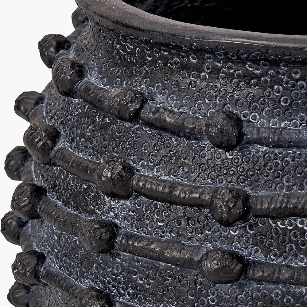 Experience style with our striking black decorative planter. Make a statement with the contemporary black colour and distinctive bobble pattern, adding texture and touch to your space. Use faux flowers and plants since the material used to make the vase not water-resistant.