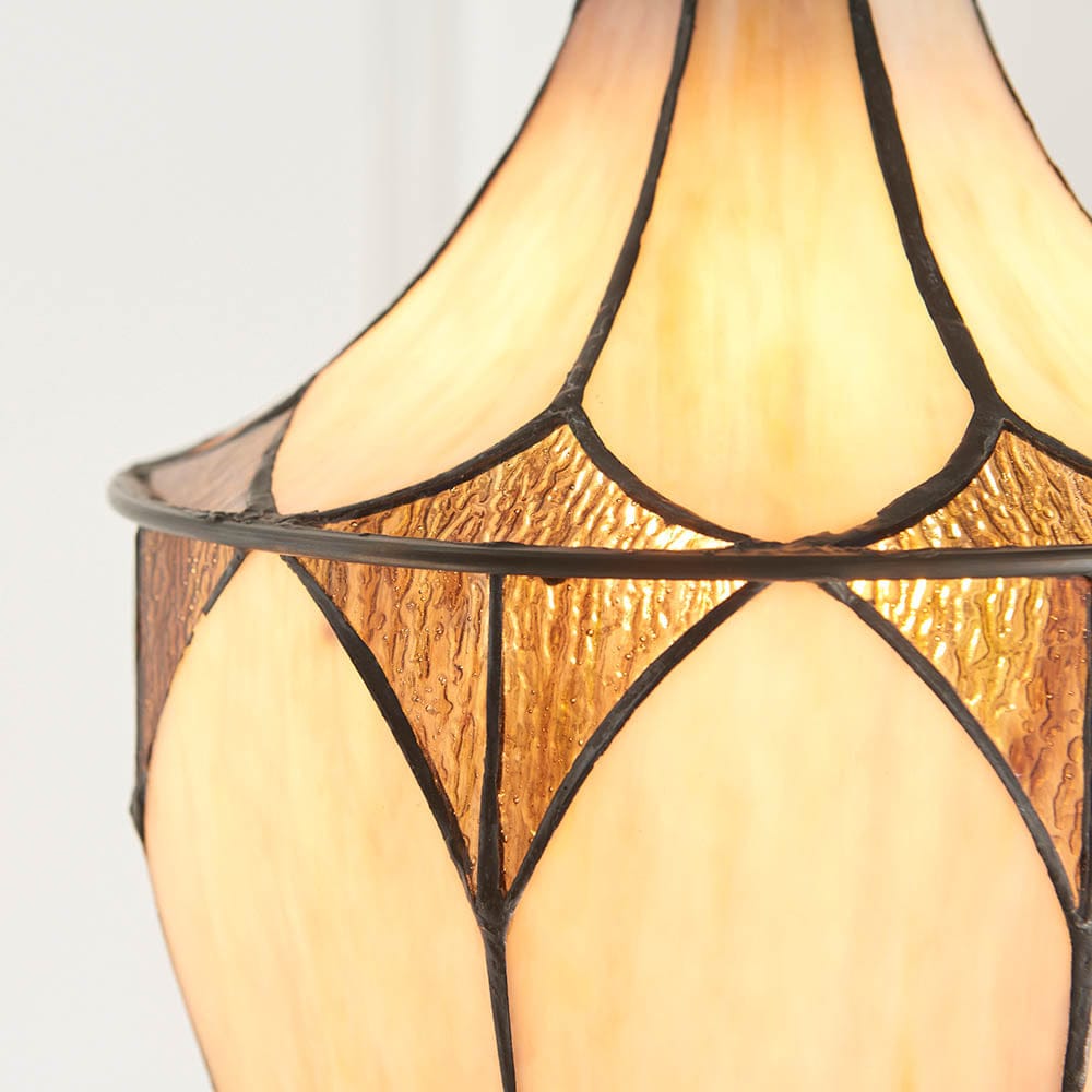 Inspired by the Art Deco period, the Tiffany Brooklyn acorn pendant features an unusual shape, bevelled and textured glass combined with rich cream art glass creating a striking finish. Compatible with LED lamps and matching items available.