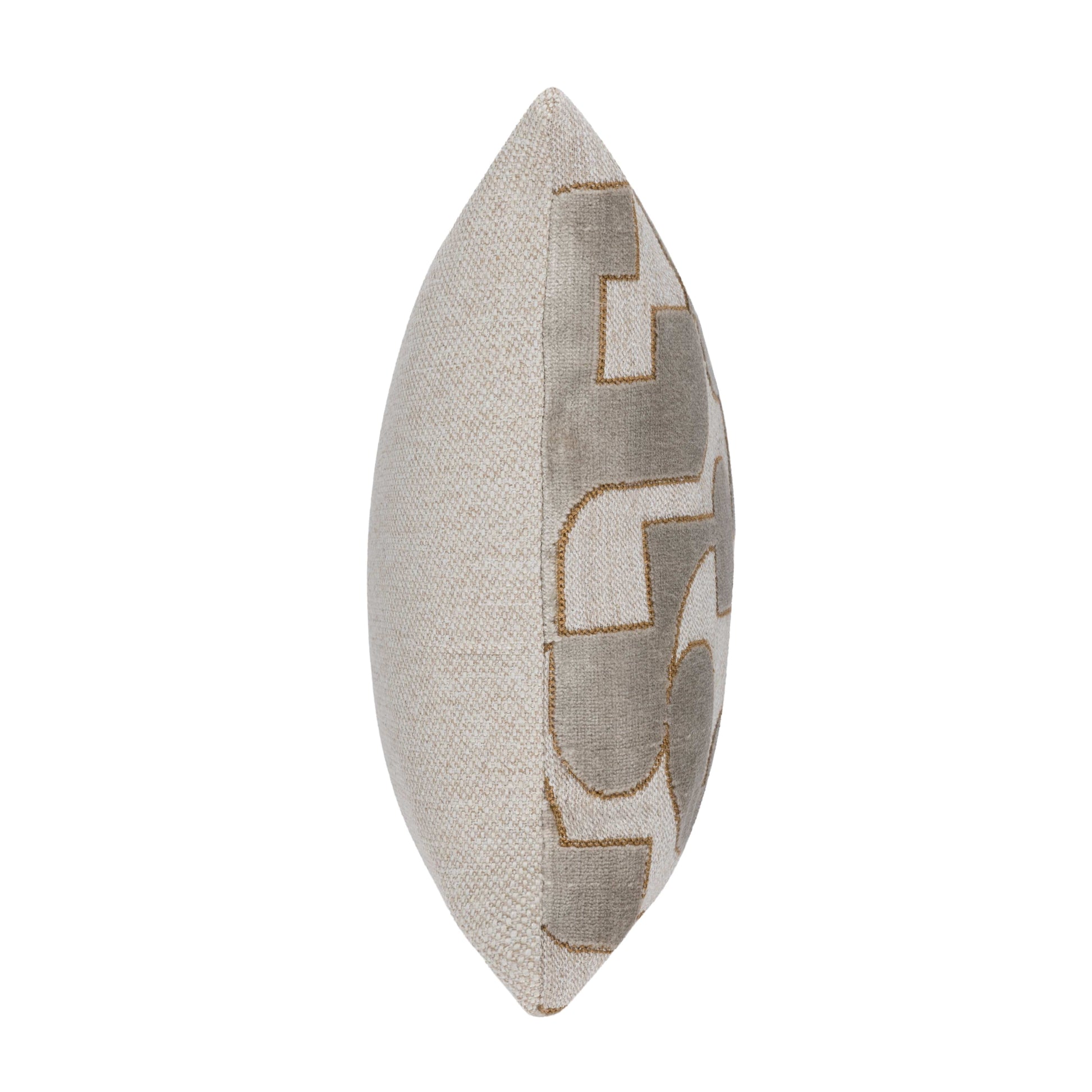 The Carter, Natural cushion adds a touch of nostalgia to modern spaces. Featuring a neutral palette and elegant gold accents, it adds depth and sophistication to any room. The playful rounded geometric pattern adds a fun element.