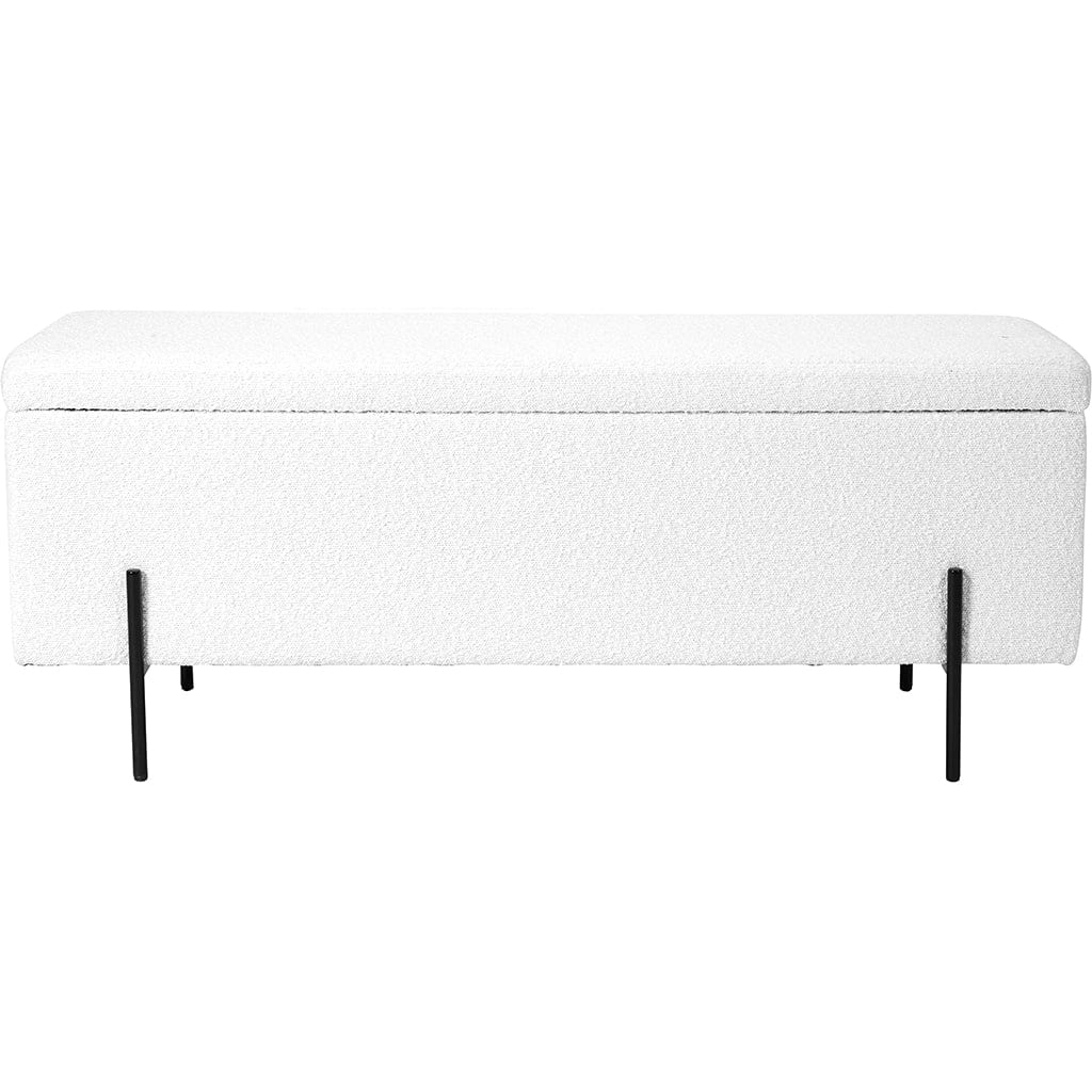 Beautiful, practical and stylish, this Bouclé Storage Bench with contrasting black legs, is a multifunctional and sophisticated storage solution. Perfect as storage in the hallway, extra seating around the coffee table or end of the bed in the bedroom.
