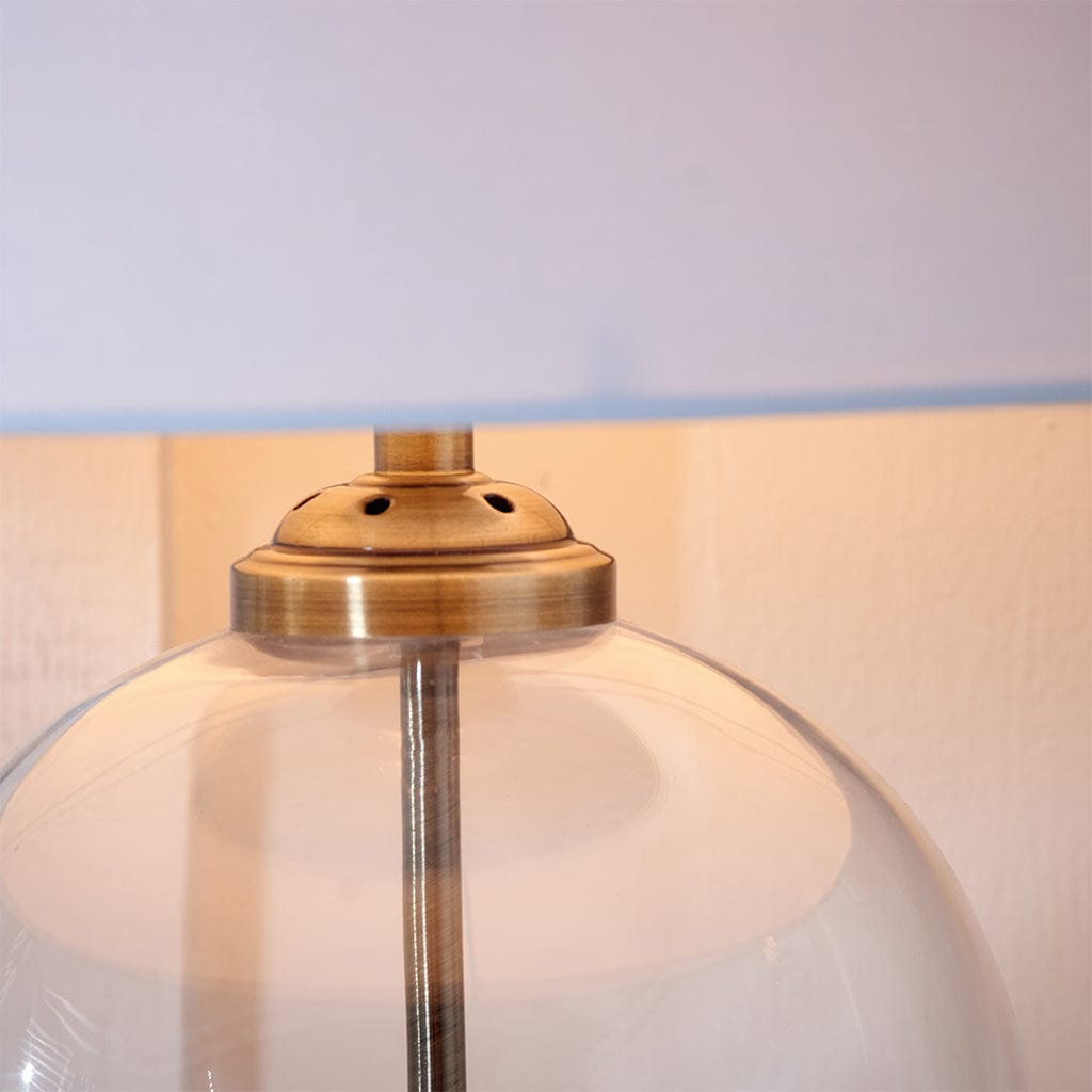 Bring the charm of a classic home with the Cloche Clear Glass & Antique Brass Table Lamp. Featuring clear glass and antique brass detailing, this lamp adds a touch of elegance and a timeless design to any side table or console. Complete with a fresh white faux cotton lined lamp shade, it will elevate any space with subtle charm and a timeless feel.