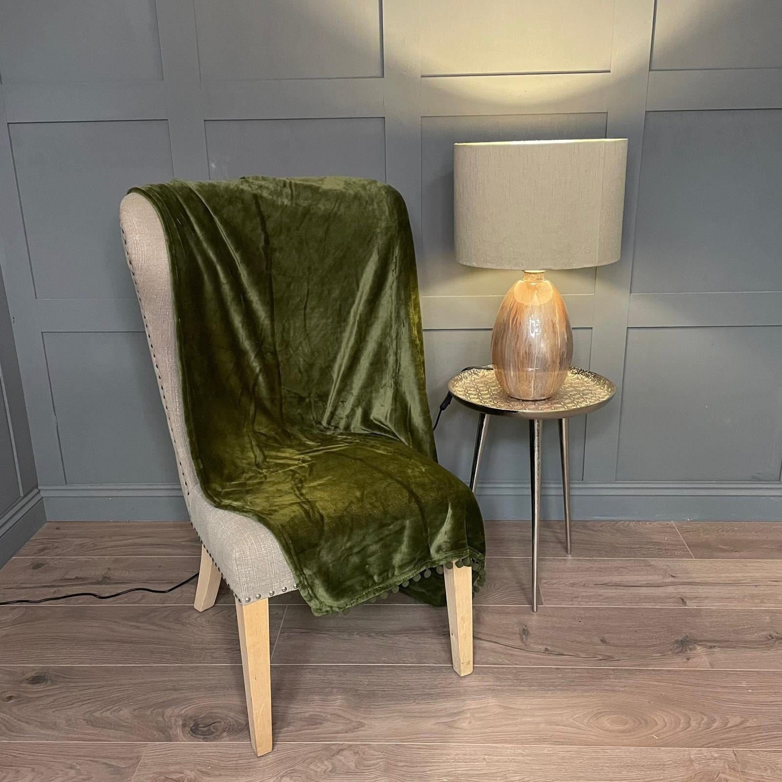 Relax and allow the Autumnal vibes to flow through your interior with the simple addition of this Dark Olive flannel fleece throw. Edged with pretty, playful pom-pom braid, the earthy colour and design work well together, ideal to have around on easy going lazy days. Also perfect as an accent colour placed over the arm of a chair or draped over the end of your bed.