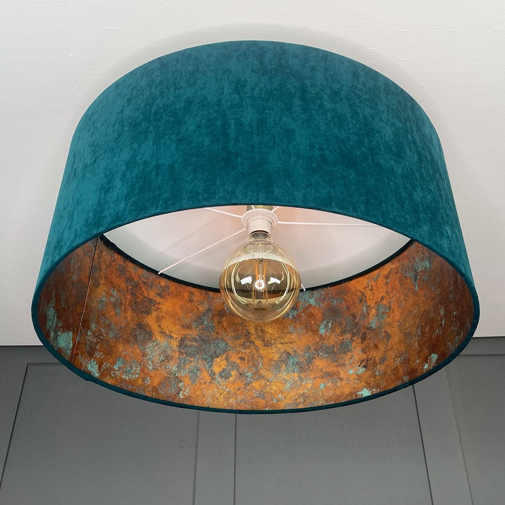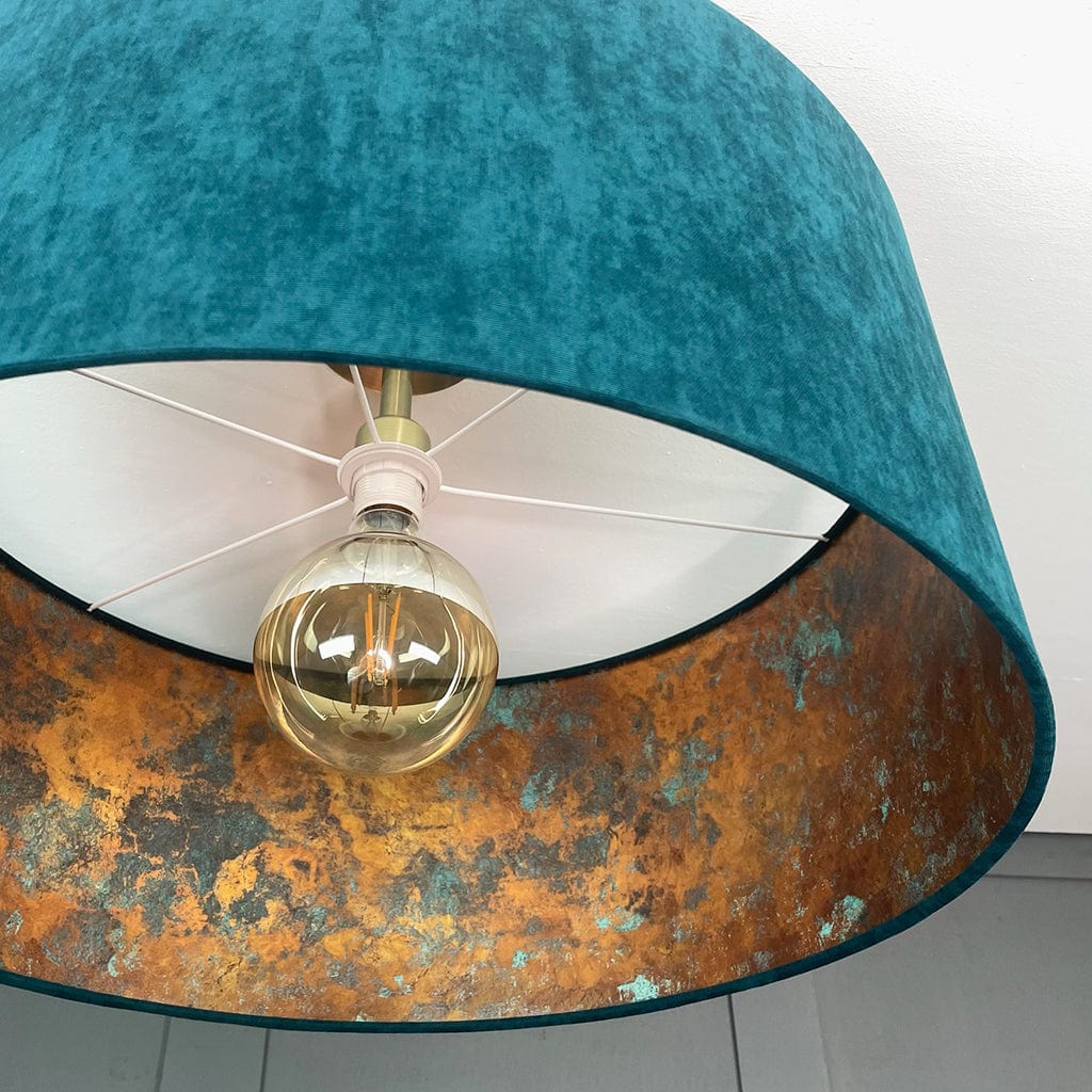 Belvoir Teal Pendant Shade with Oxidised Copper Metallic Wallpaper Lining