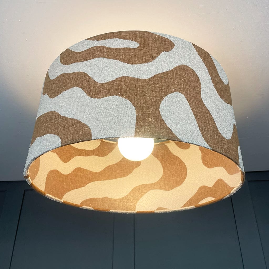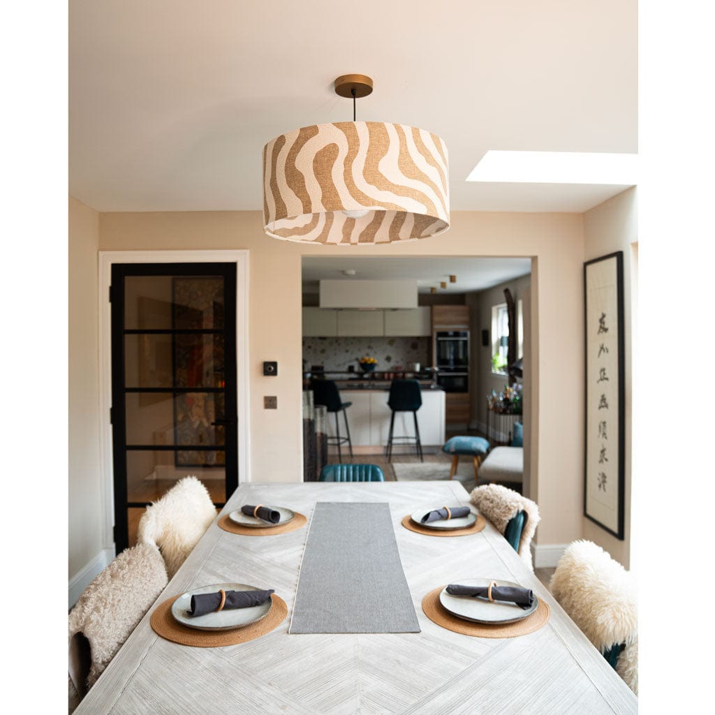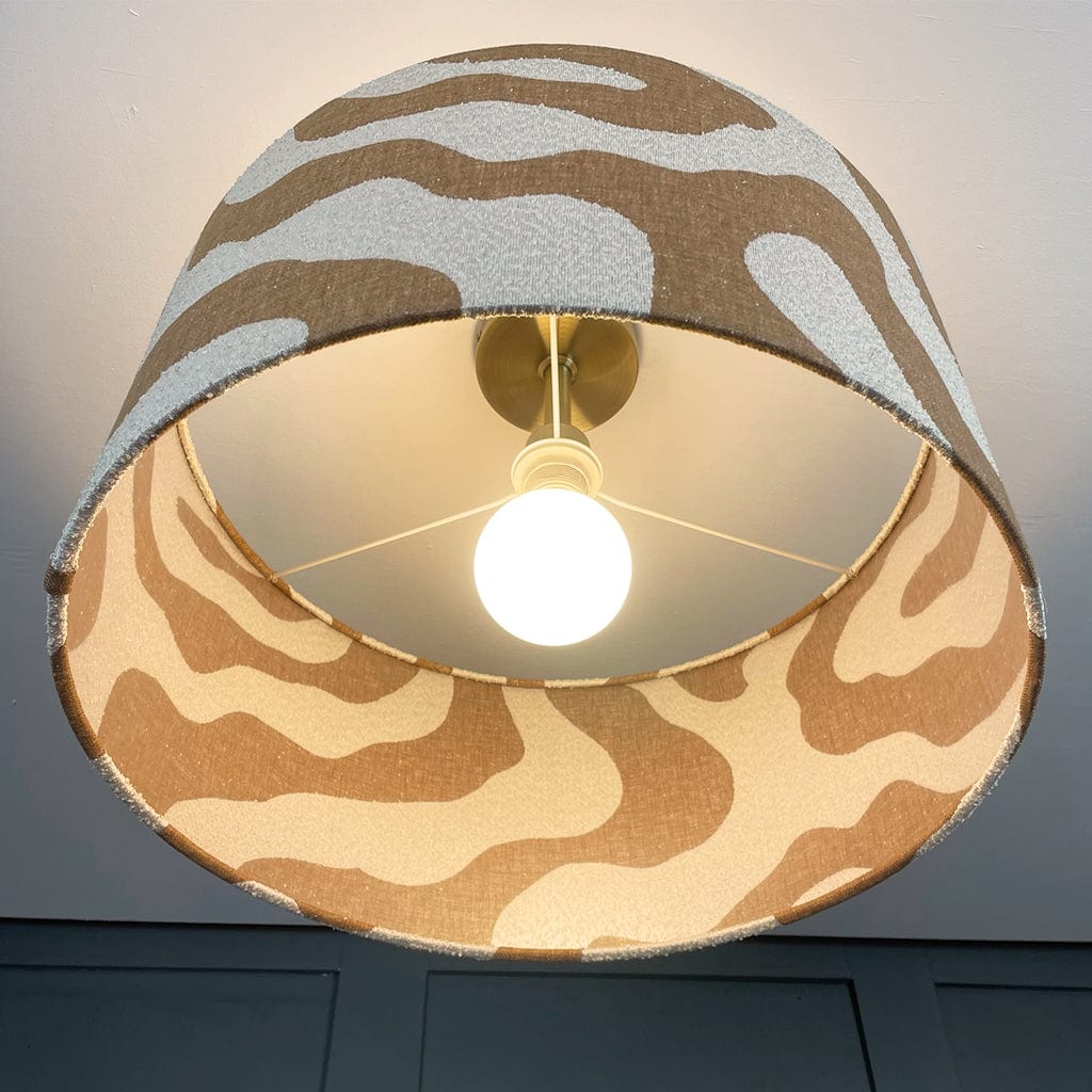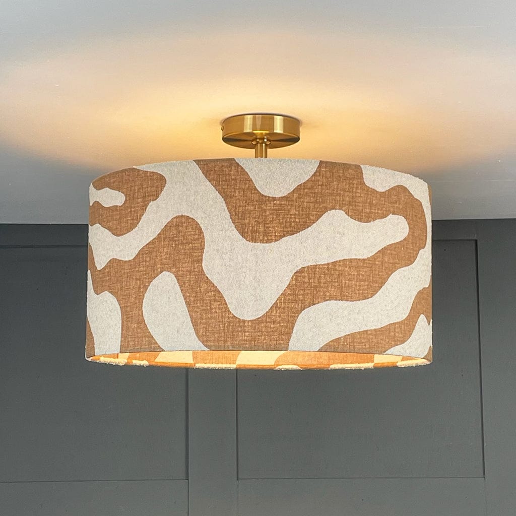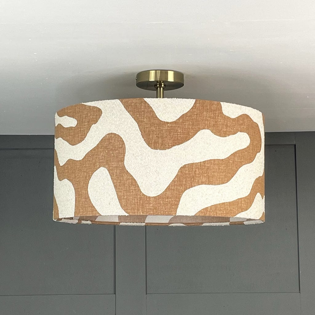 Electrify your shade to your desired height by installing one of our pendant light fittings, available in a variety of drops and metal finishes. Paired here with our semi flush ceiling rod in antique brass; other size options available below.