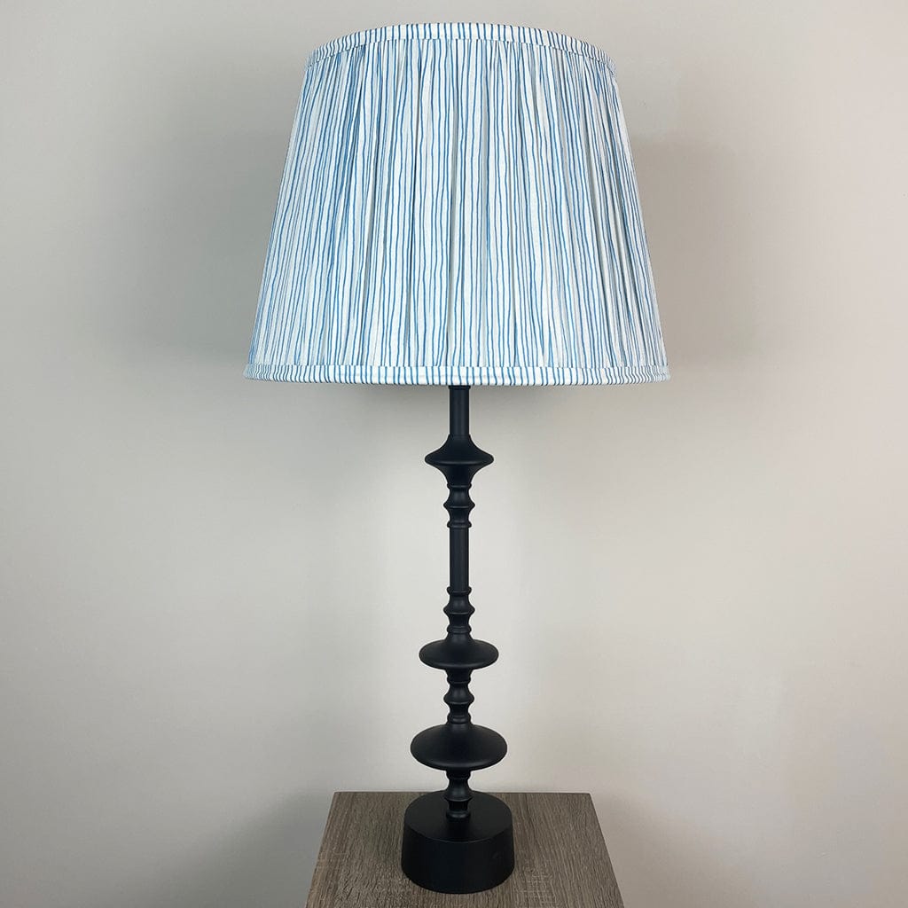 Indulge in the sophisticated elegance of our Emilio Matt Black Candlestick Table Lamp Base, handcrafted in India. Its sleek design exudes boldness and luxury, making it the perfect addition to any space.