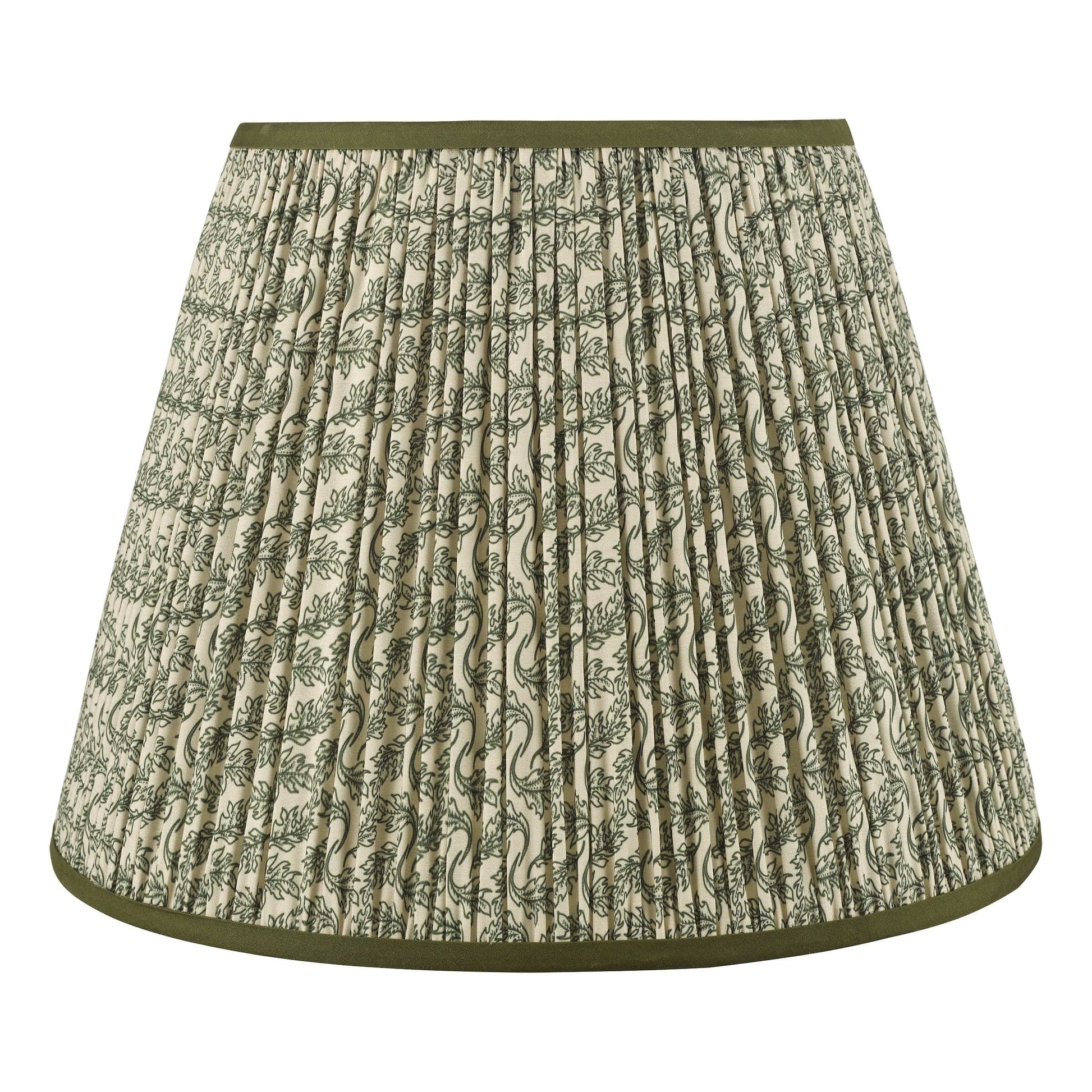 A floral green cotton shade - Its soft tones suit both modern and country interiors, bringing warmth and character to any room.