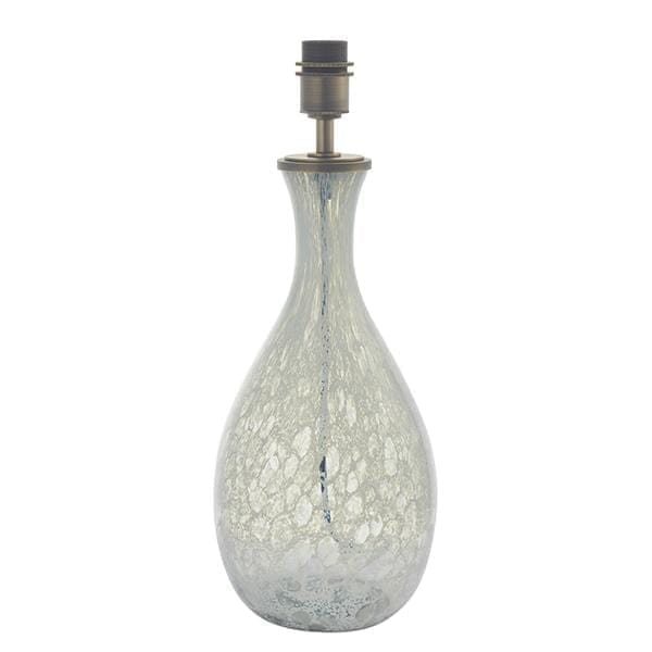 Spirit is a large artisan white and clear glass table lamp. This lamp would make a lovely bedside light or living room table lamp. The tracery markings give an ethereal quality to this piece. This adaptable piece sits well within many different décor styles and suit any colour of lampshade and particularly suits a cylindrical drum shaped lampshade. The attention to detail is outstanding with brushed bronze plated metal work details and 1.5m of luxurious black fabric cable with an inline switch.