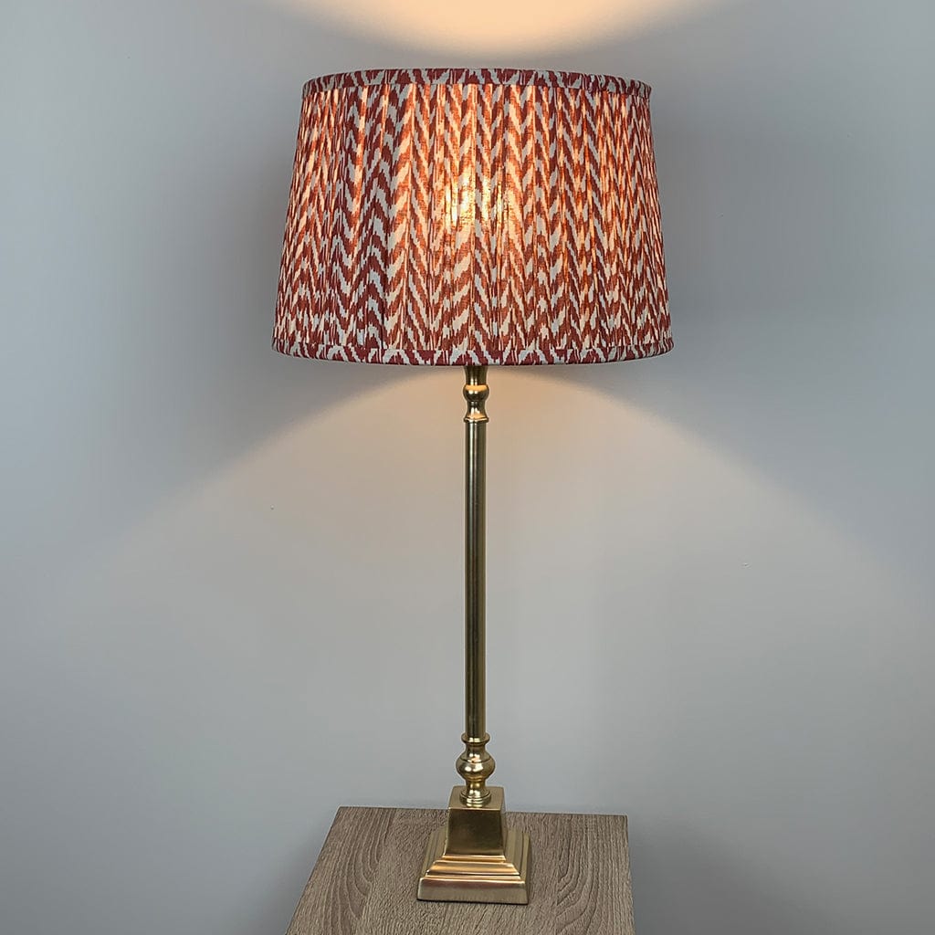 This on trend ikat style printed tapered shade looks perfect on our Gold Stick Table Lamp. The hand pleating, in what we call 'mushroom pleat', creates a soft and elegant feel whilst bringing a touch of colour to your theme.