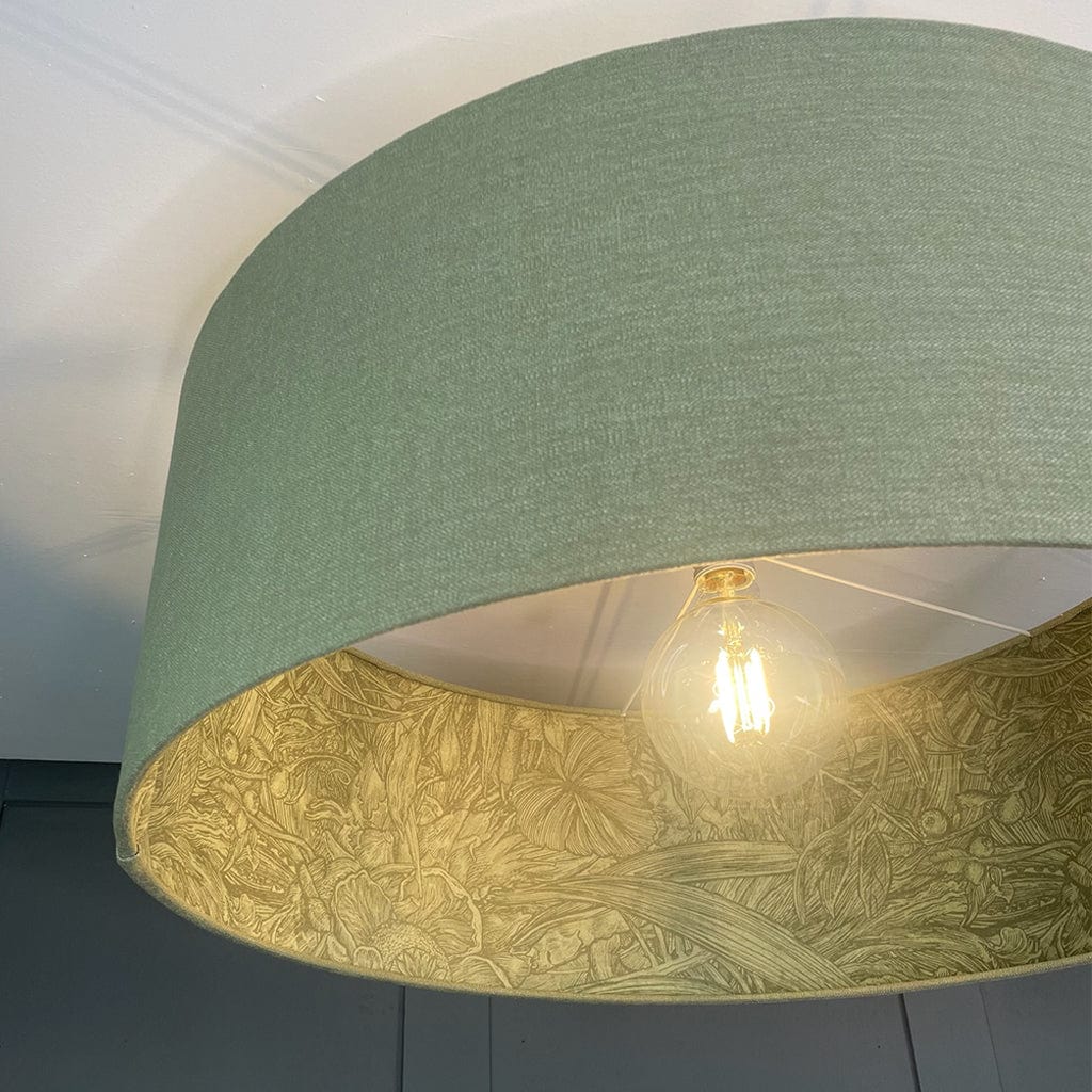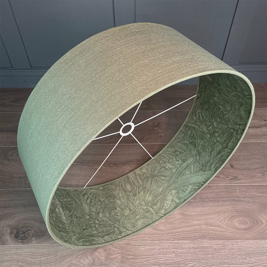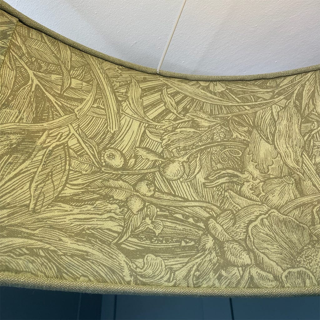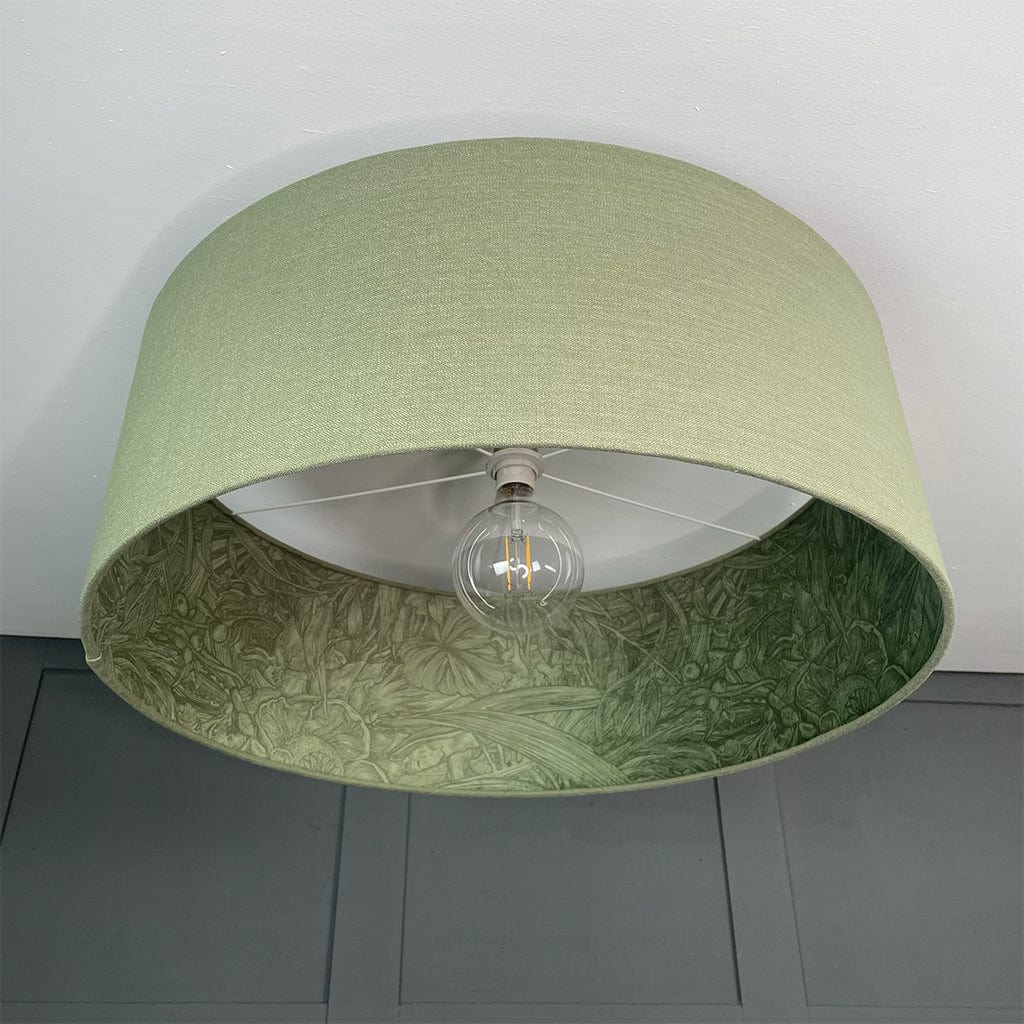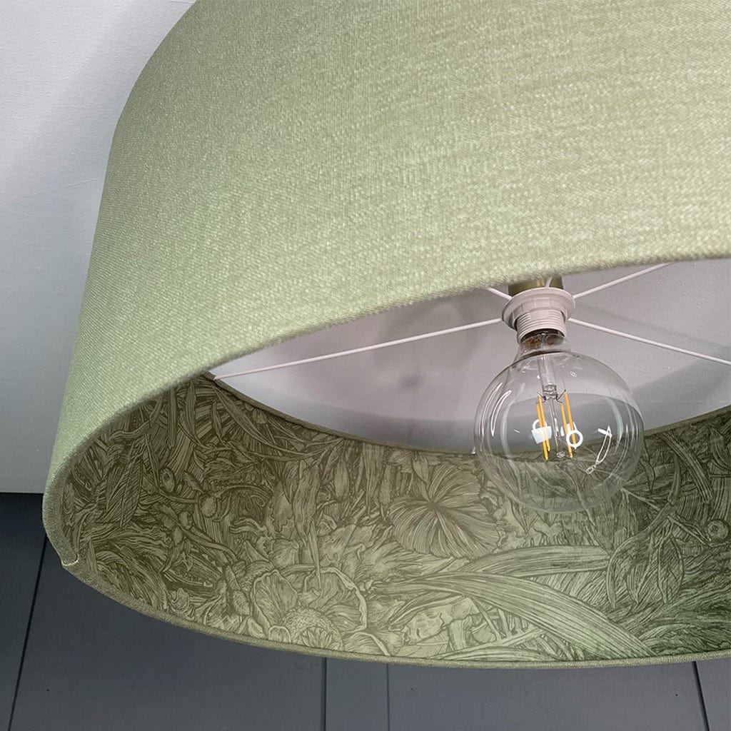 Celebrate the art of illustration with the Jungle Tangle Willow Green Velvet Pendant Shade, handcrafted using fabric from the Timorous Beasties x Panaz collection. Inspired by vintage botanical engravings and intaglio prints, this design features a subtle green velvet exterior and a captivating inner Jungle Tangle fabric, where nature-inspired illustrations come alive upon closer inspection. The contrasting textures and detailed print reflect the Timorous Beasties' signature commitment to drawing-led design, turning everyday lighting into art.