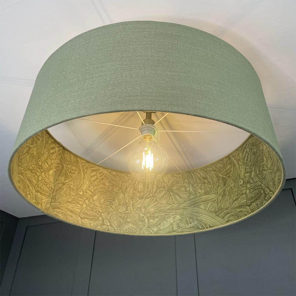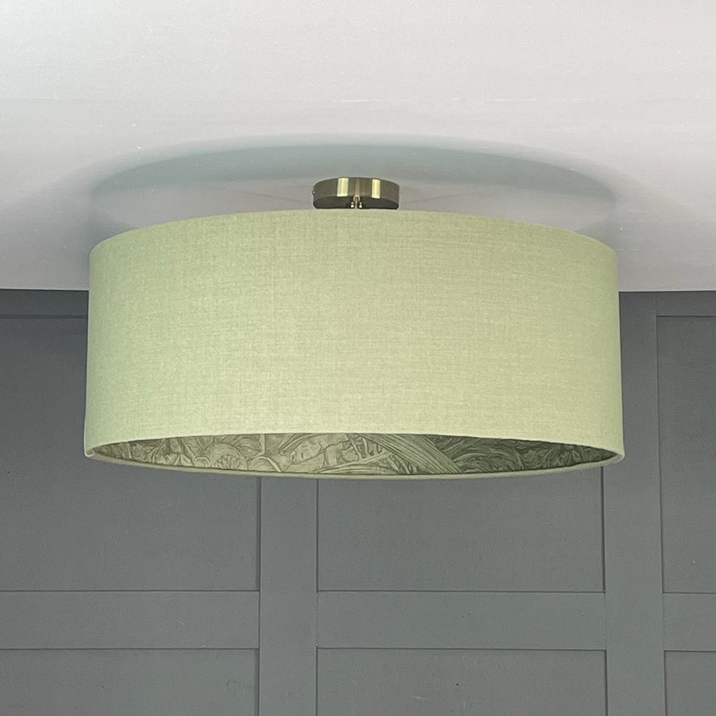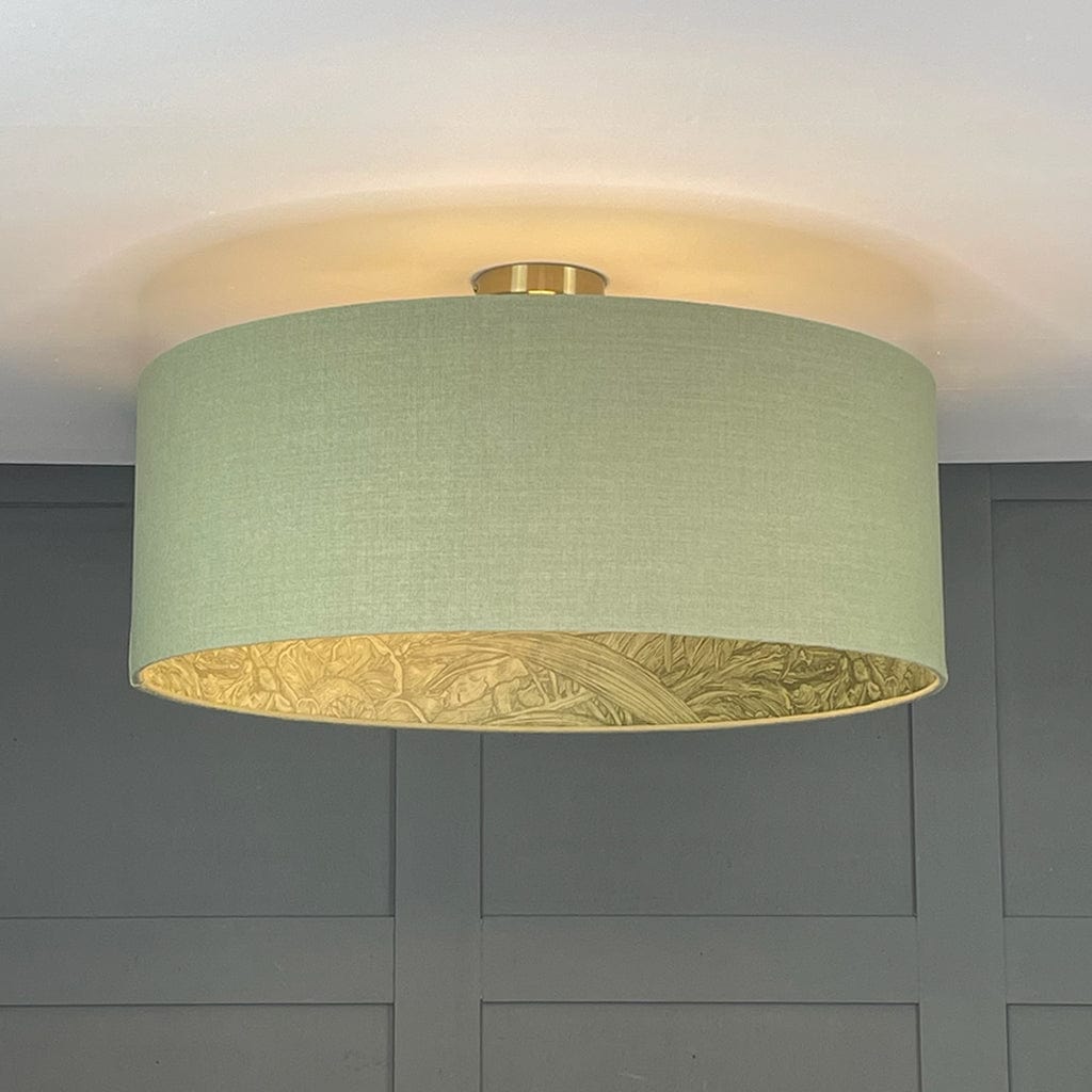 Electrify your shade to your desired height by installing one of our pendant light fittings, available in a variety of drops and metal finishes. Paired here with our semi flush ceiling rod in antique brass; other size options available below.