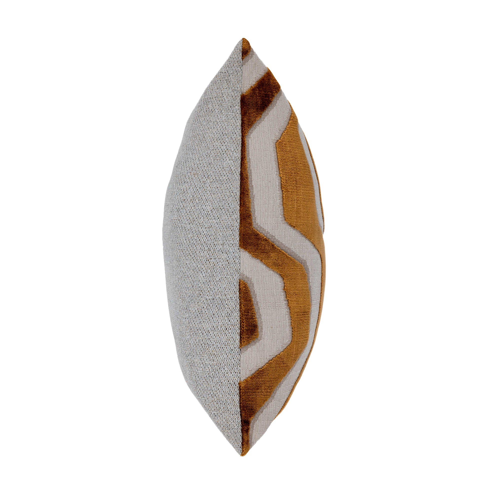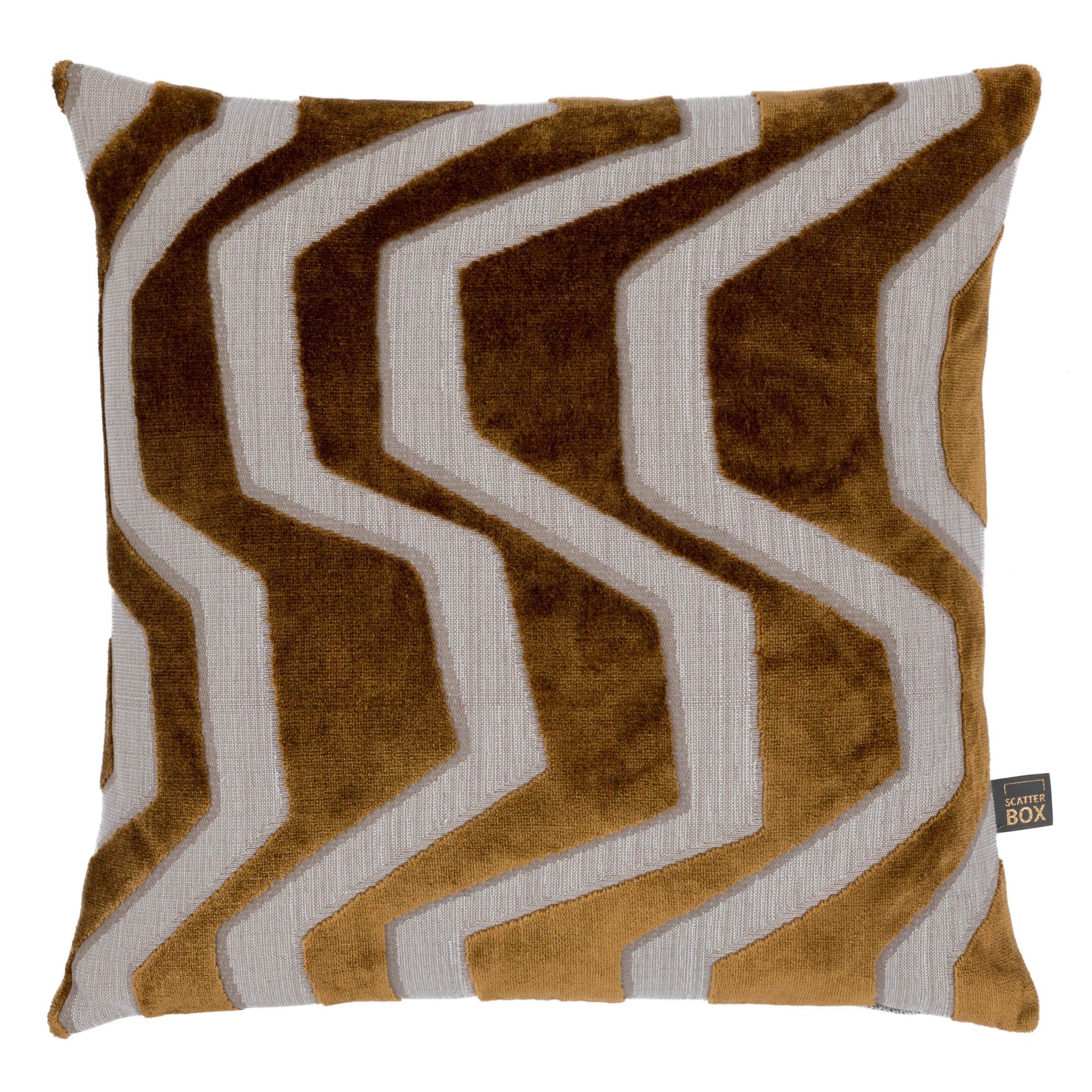 Elevate your living space with the Kirby Gold cushion, showcasing a captivating pattern. Completed in a lavish gold velvet, this opulent cushion is ideal for beds, sofas, and cozy seating areas.