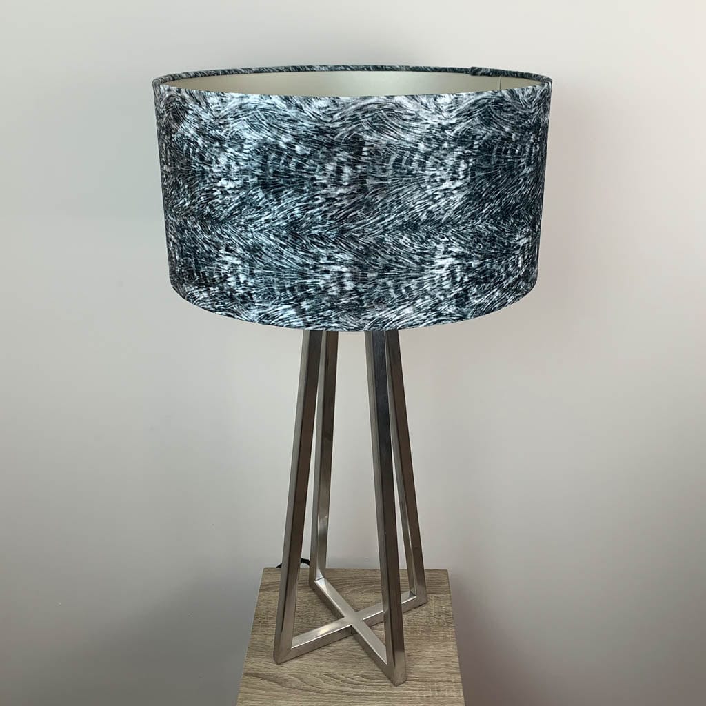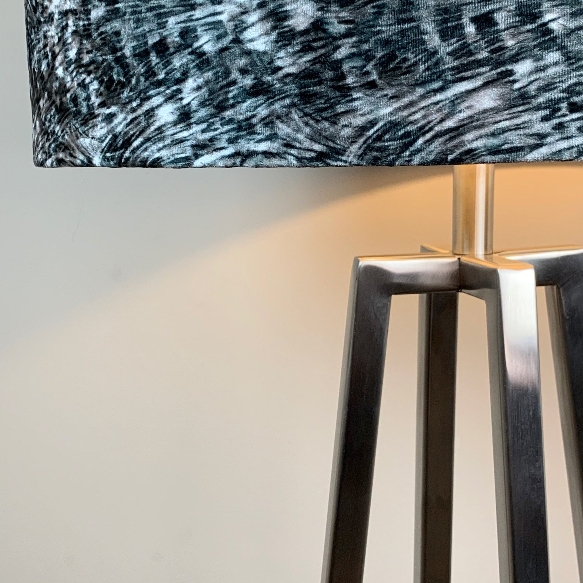 Madison Brushed Steel Table Lamp with Black Quill Velvet Shade