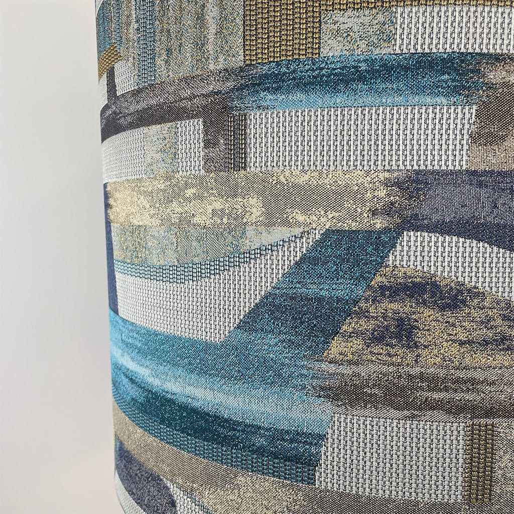 Here we have handcrafted a deep drum lampshade with Berlin Teal fabric - a fabric with a textured geometric pattern with bold teal tones, a sophisticated touch of class to any room.